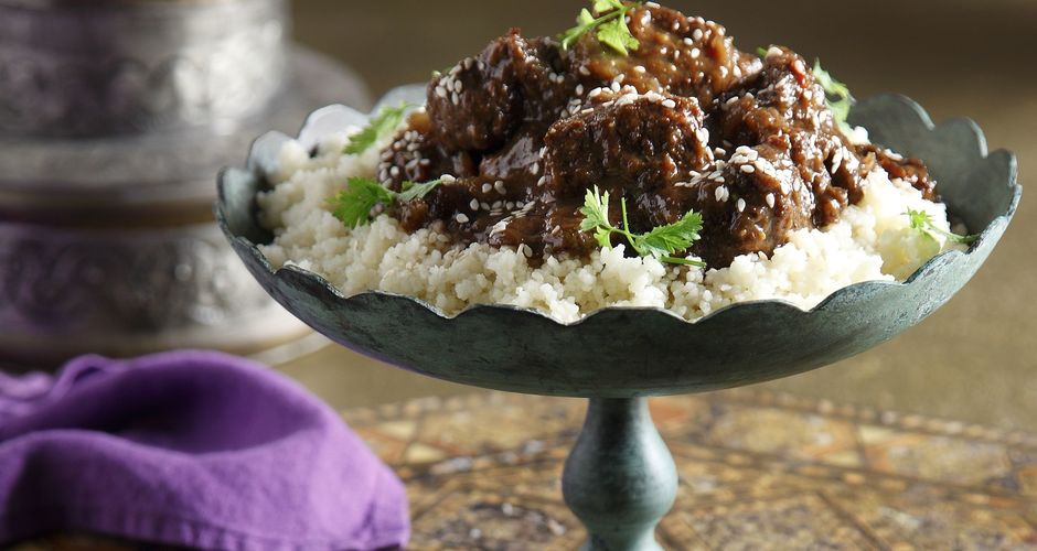 Cook 1 minute, stirring frequently. Wait until it boils, then cover and transfer to the oven. Moroccan cuisine is distinguished by its european, arabian, and berber influences. When the onions have started to change color, you will need to add the beef. In a medium bowl, add couscous, pour over boiling water, and cover with a large plate or lid. Drizzle the olive oil in the pan and fry the onions in a frying pan on a medium heat until golden, add the garlic and fry for a further 2 minutes. Bring to a boil over high heat. Pour boiling water over couscous to cover by about 1 cm, then cover with lid (or tightly with plastic wrap) and let stand about 5 minutes. While the tagine simmers, prepare the couscous according to the package directions. Stir up and sweat the onions for a few minutes. Add the short ribs, pushing them down into the vegetables. Moroccan beef tagine, served in a tagine pot. Stir in the chickpeas, prunes, dates, concentrated beef stock and 1½ cups of water.bring the mixture to a boil, and boil for 3 minutes.